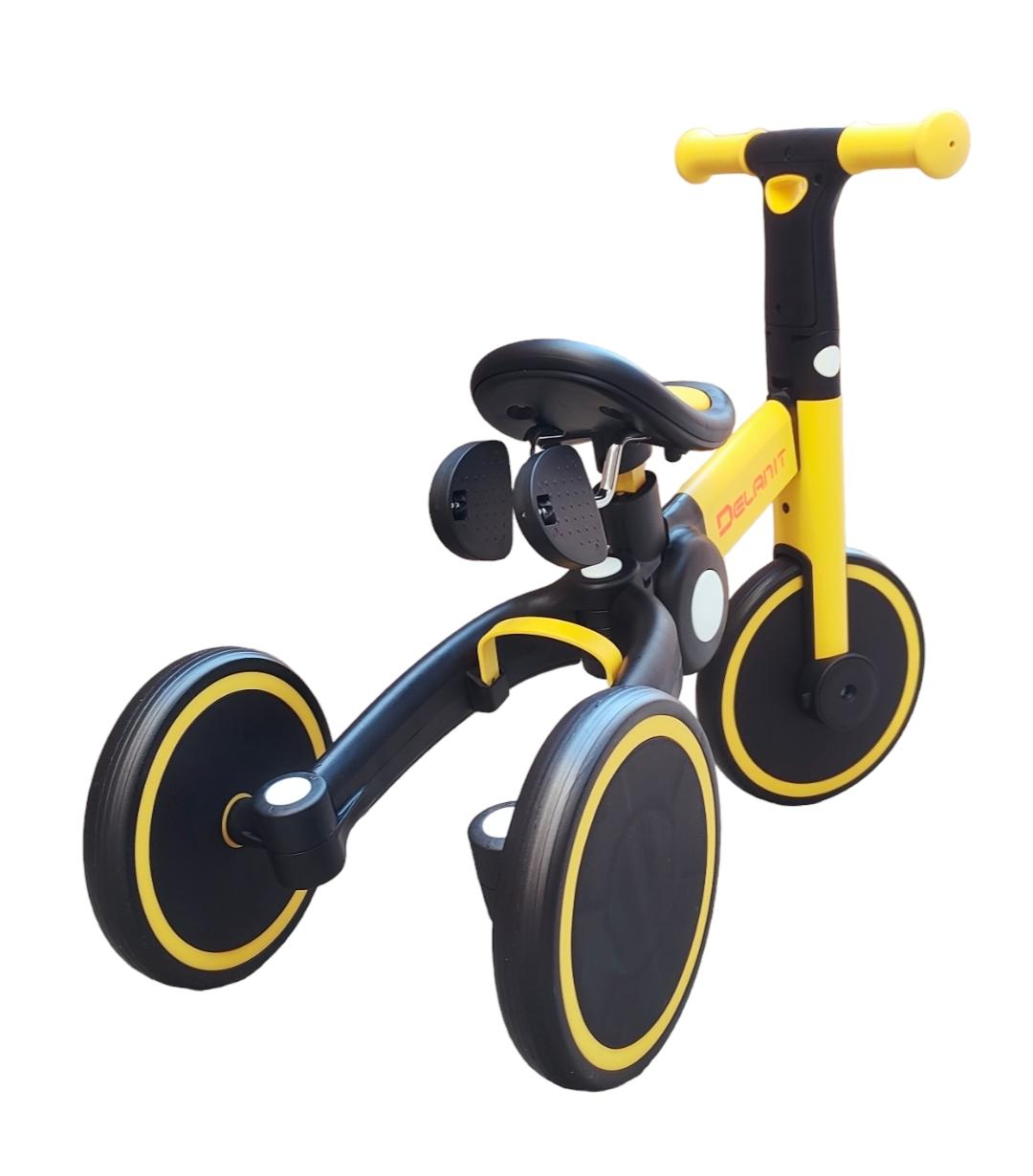 Стильный велосипед-беговел с родительской ручкой 3в1 отлично подойдёт деткам от 1,5 до 3 лет. Максимальная нагрузка до 40 кг. В данной модели педали съёмные, поэтому пока малыш не умеет крутить колёса их можно снять и использовать как транспорт как беговел. Когда малыш подрастёт беговел легко трансформируется в велосипед, вставив педали. Высота сидения регулируется. Сам велосипед имеет складную конструкцию и удобную ручку для переноски. Комфортное широкое сидение и устойчивые колёсики делают эту модель не только привлекательной но и удобной в эксплуатации.