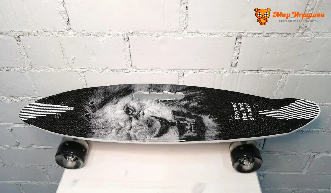 Скейтборд (пенни борд) - Лев, со светящимися колёсами и ручкой, 120/7mi
