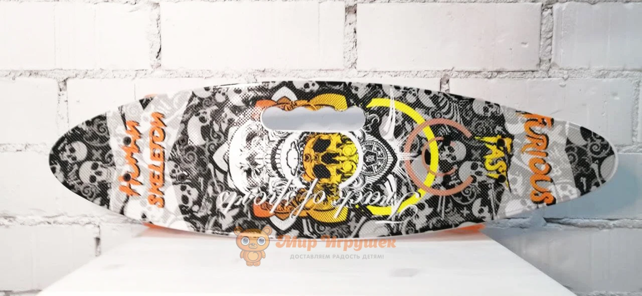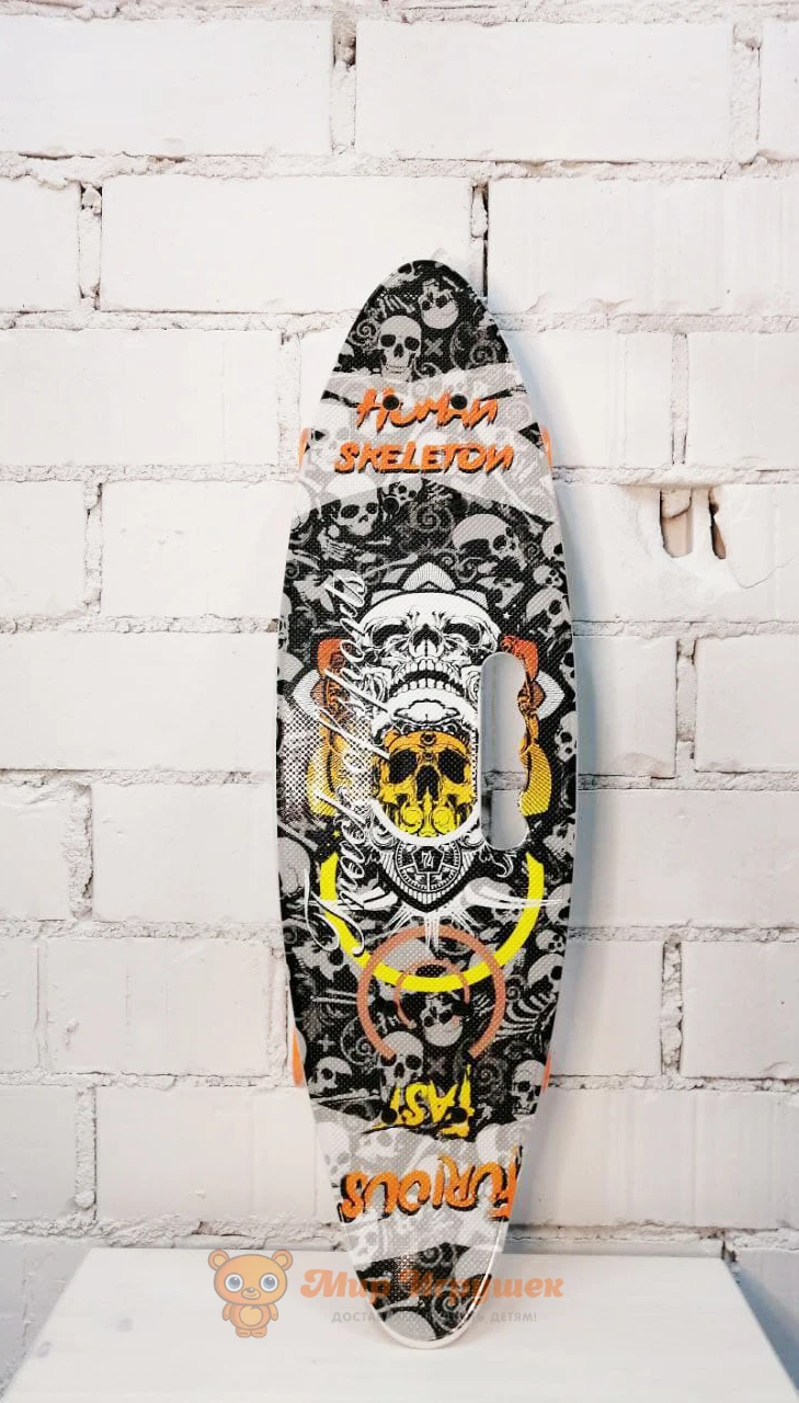 Скейтборд (пенни борд) - Skeleton, со светящимися колёсами и ручкой, 120/8mi