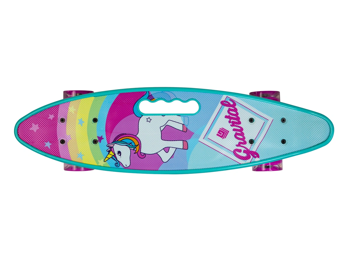 Скейтборд (пенни борд) с ручкой - Единорог, светящиеся колёса, 885/10mi