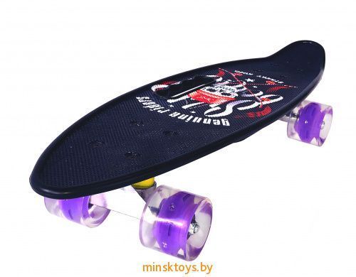 Скейтборд (пенни борд) с ручкой - Пираты, светящиеся колёса, 885/17mi