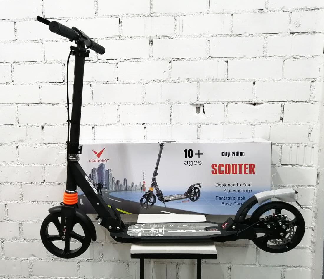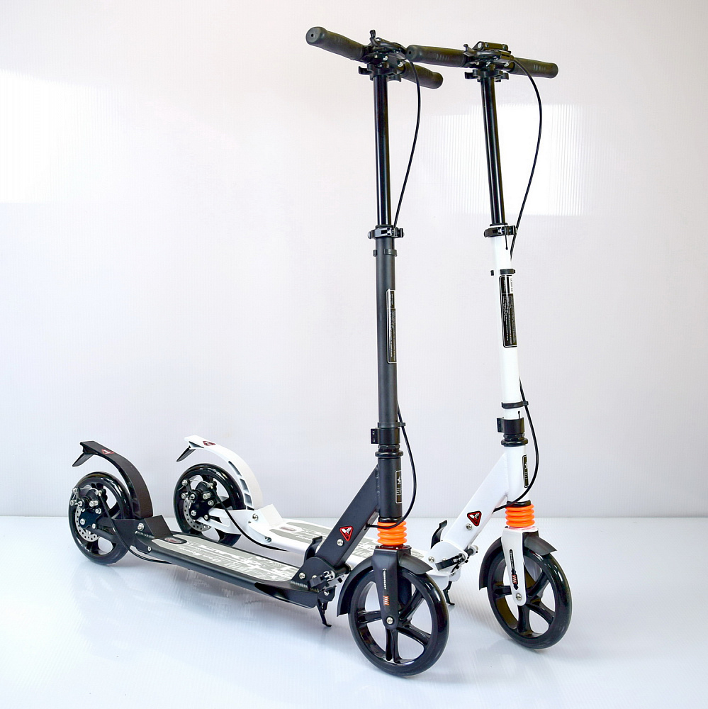 Складной двухколёсный самокат Urban Scooter HT-2008D (Урбан Скутер) — это модель оснащённая большими полиуретановыми колёсами диаметром 200 мм и амортизаторами обоих колёс.
