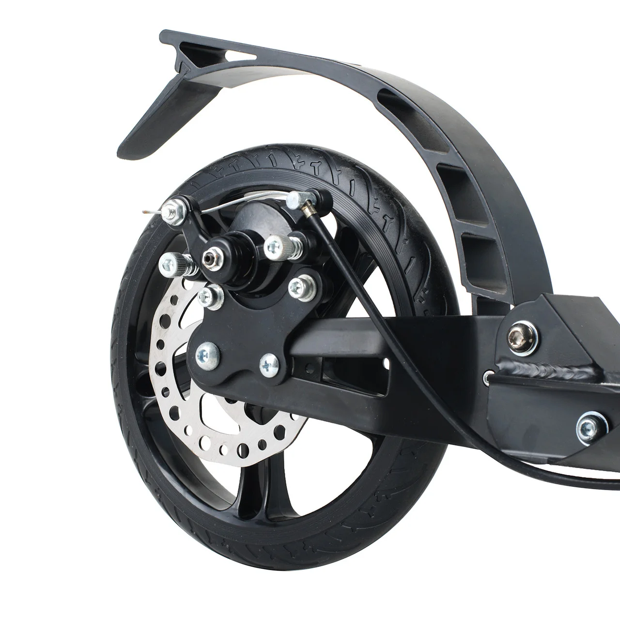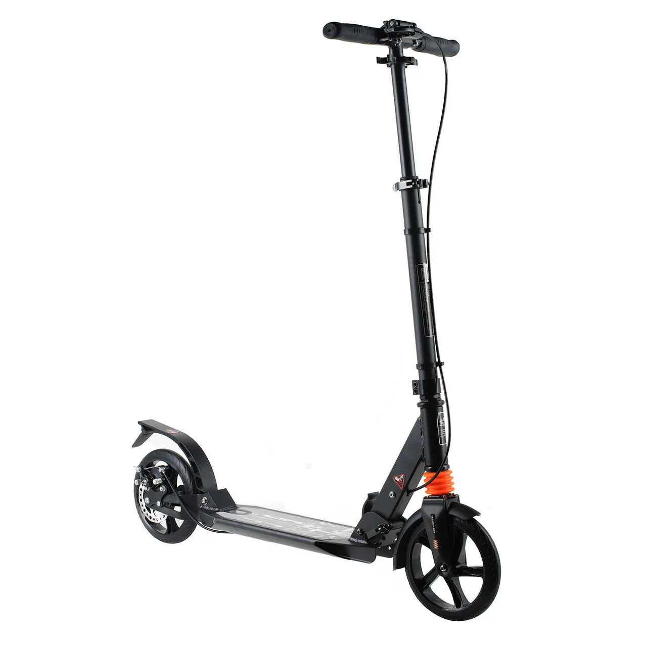 В дополнение к штатному ножному тормозу самокат Urban Scooter HT-2008D оснащён ручным дисковым тормозом. Дисковый тормоз значительно повышает эффективность торможения, что будет хорошим плюсом для любителей погонять на большой скорости, а также при катании во влажную погоду.