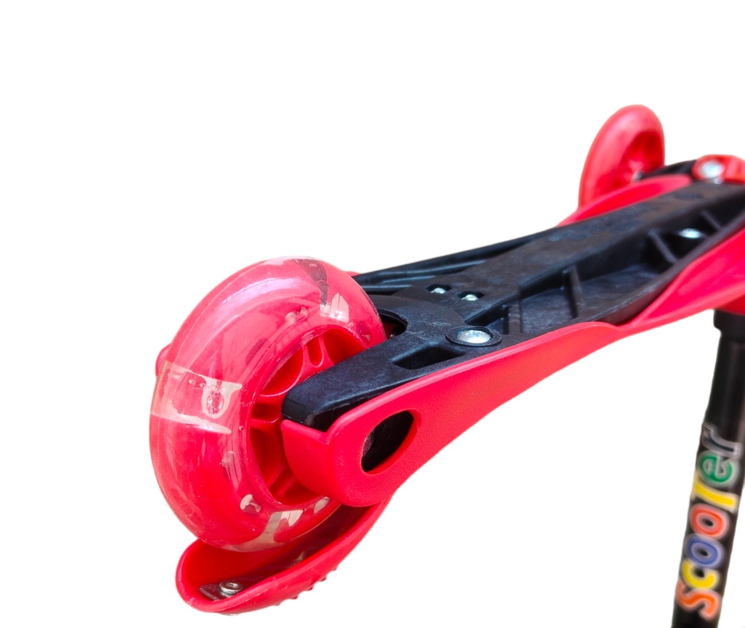 Трехколесная конструкция обеспечивает надежность и стабильность самоката на дороге, а светодиодные колеса превращают прогулку на нем в увлекательное приключение. В ночное время светящиеся колеса привлекут внимание прохожих и сделают прогулку ещё ярче и запоминающейся.
