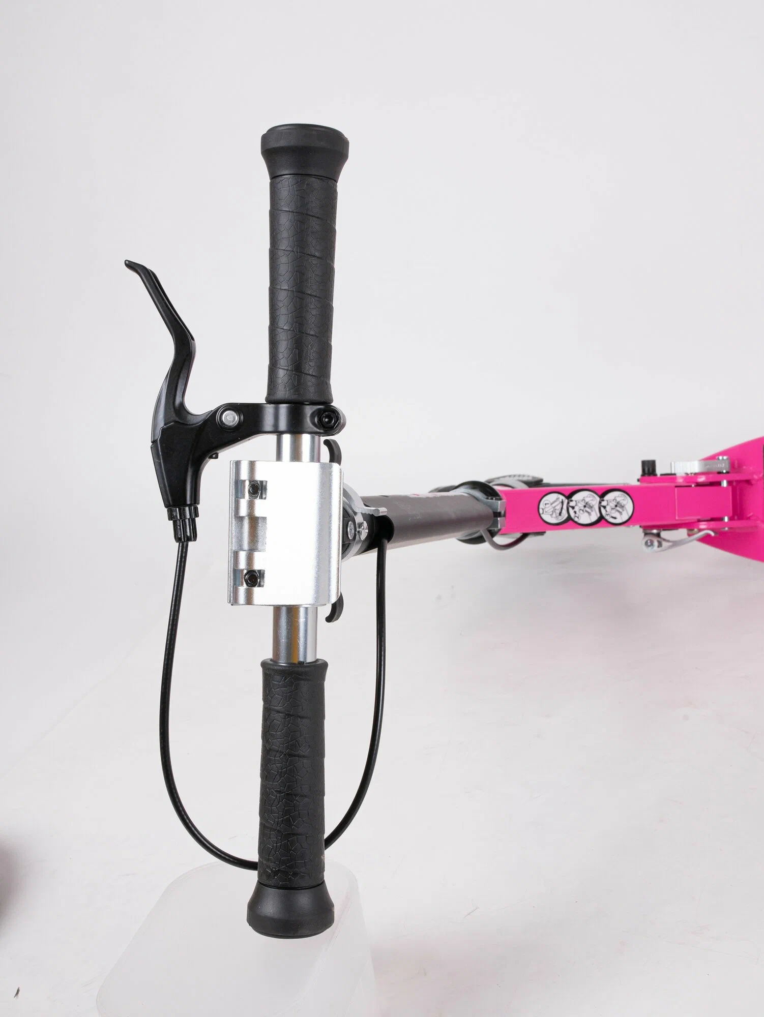 "Изюминка" модели - ручной дисковый тормоз, позволяющий не только выполнять эффективное торможение, но и по настоящему украшающий самокат. Тросик тормоза, в отличие от многих аналогов, проведен через специальные каналы в рулевой стойке и деке и не мешает езде.